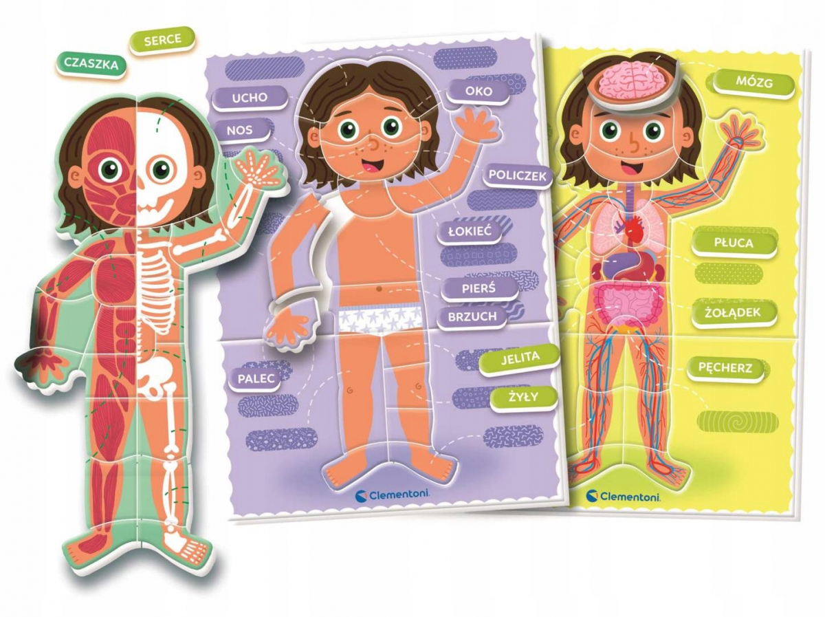 Edukacyjna gra dla dzieci, która w przystępny i angażujący sposób wprowadza najmłodszych w świat anatomii człowieka. Produkt łączy naukę z zabawą, rozwijając ciekawość poznawczą oraz zdolności logicznego myślenia. Dzięki atrakcyjnej formie układanki dzieci poznają budowę ludzkiego ciała zarówno z zewnątrz, jak i od środka.