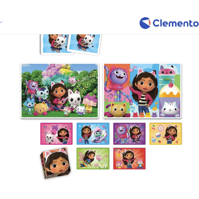 Zawiera puzzle 30 elementów i 48 elementów, grę memo i sześć kostek.
