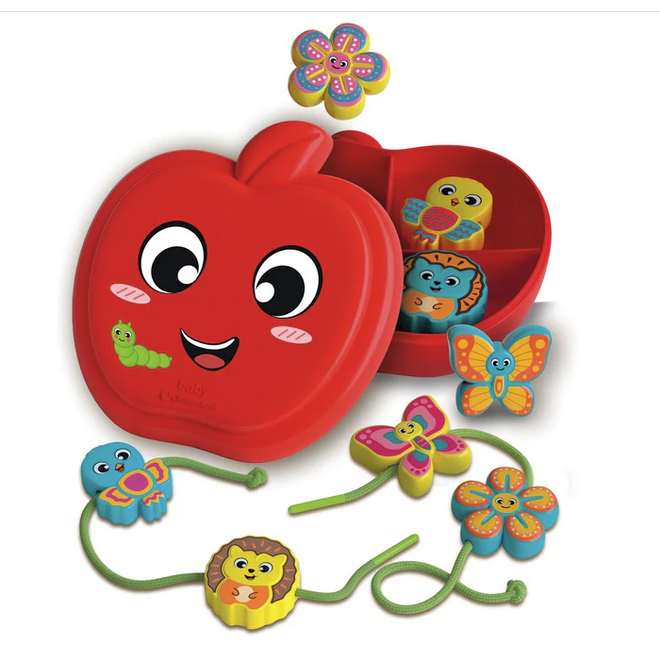 Postać za postacią: ćwicz cierpliwość. Zabawka pomaga rozwijać koncentrację i precyzję najmłodszych dzieci. Wszystkie postaci można odłożyć do uroczego czerwonego jabłuszka.