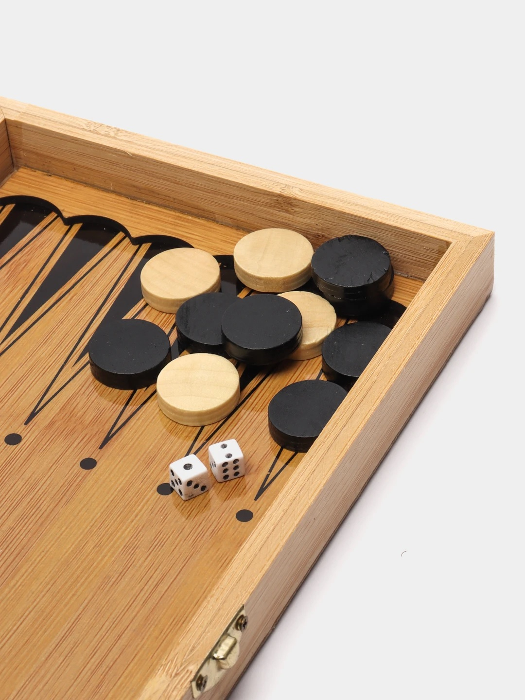 Wyjątkowy drewniany zestaw szachowy 3w1 – szachy, warcaby oraz tryktak w jednym 34 x 34 cm