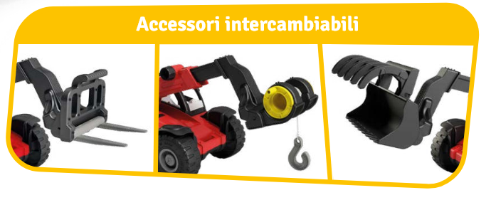 Zabawka oferuje aż 3 funkcje w jednym – może pełnić rolę ładowarki, podnośnika oraz pomocnika przy „przenoszeniu” różnych elementów, takich jak klocki, piasek czy inne zabawki. Dzięki temu dziecko może tworzyć własne scenariusze zabawy i odkrywać nowe możliwości.