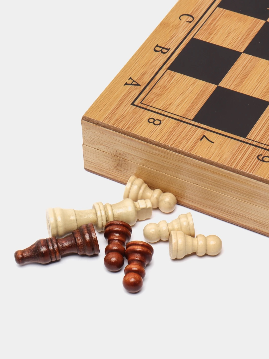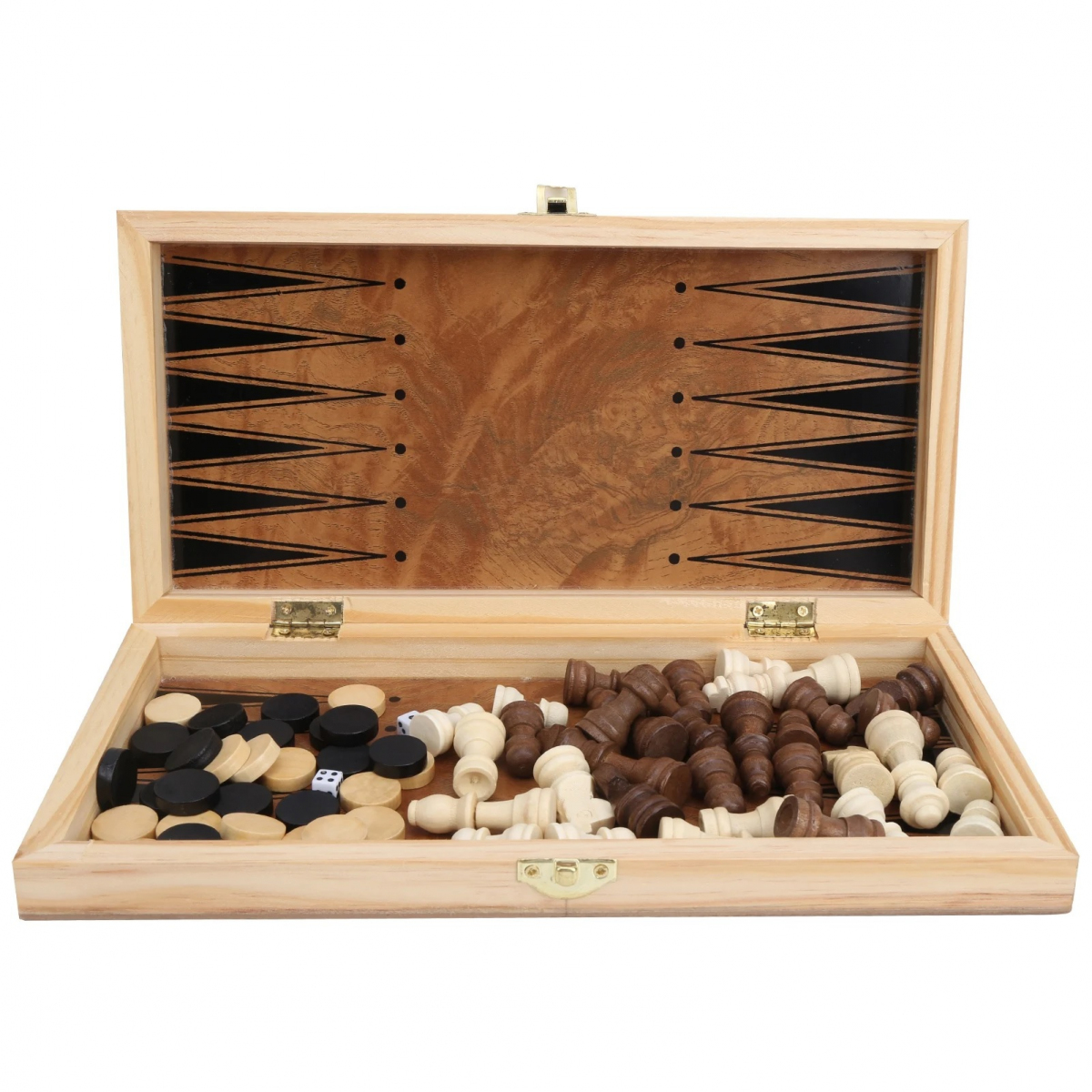 Ponadczasowy zestaw 3w1 - ta klasyczna towarzyska gra nigdy się nie znudzi.  Pięknie i solidnie wykonana szachownica zachwyci każdego gracza. Poręczna kaseta zamykana jest na zatrzask, po zamknięciu zajmuje niewiele miejsca i łatwo się ją przechowuje. Drewniane szachy to takżeświetna propozycja prezentu dla miłośników gier planszowych i fanów szachów. Tak elegancki prezent, docenią zarówno amatorzy, jak i profesjonaliści.